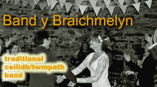 Band Y Braichmelyn has been in existence since the late 1980's, and is still very active. The roots go back even further to The Boffins, run by Neil's dad since the 1950s. We weren't born then, but both of us played in the band a lot in the decades before we moved to Wales and formed Band Y Braichmelyn. The band name, by the way, derives from the area of Bethesda where we lived for many years.
